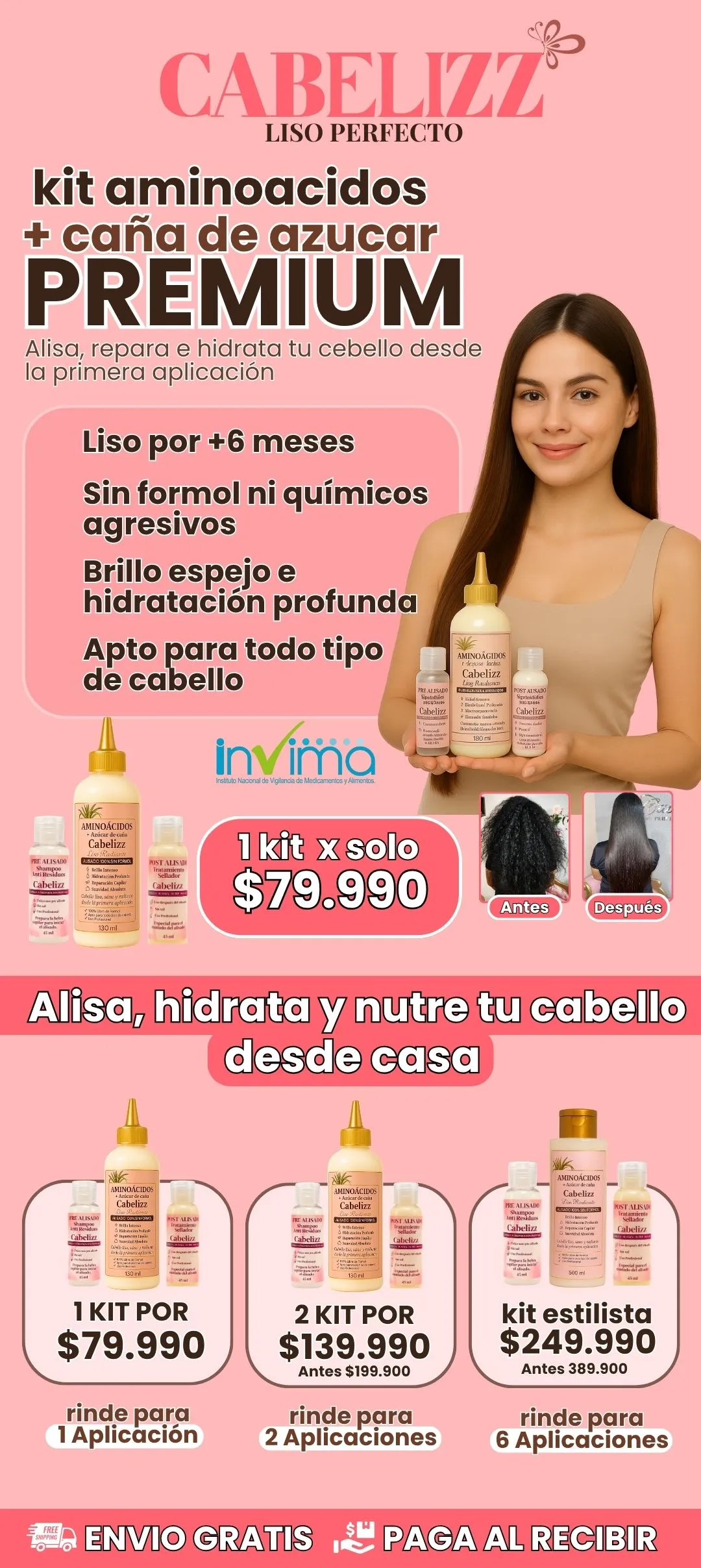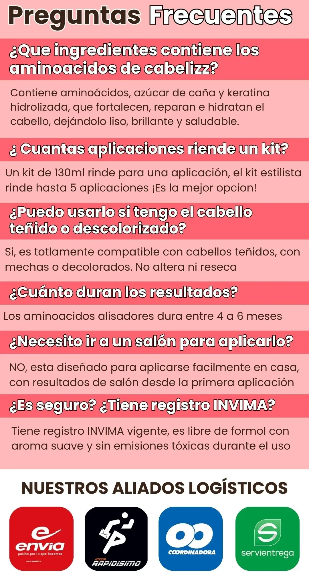 Con más de 1.500 alisados realizados en mi centro de belleza, decidí crear un producto que te permita lograr un cabello 100% liso, sin frizz y libre de formol desde la comodidad de tu hogar.