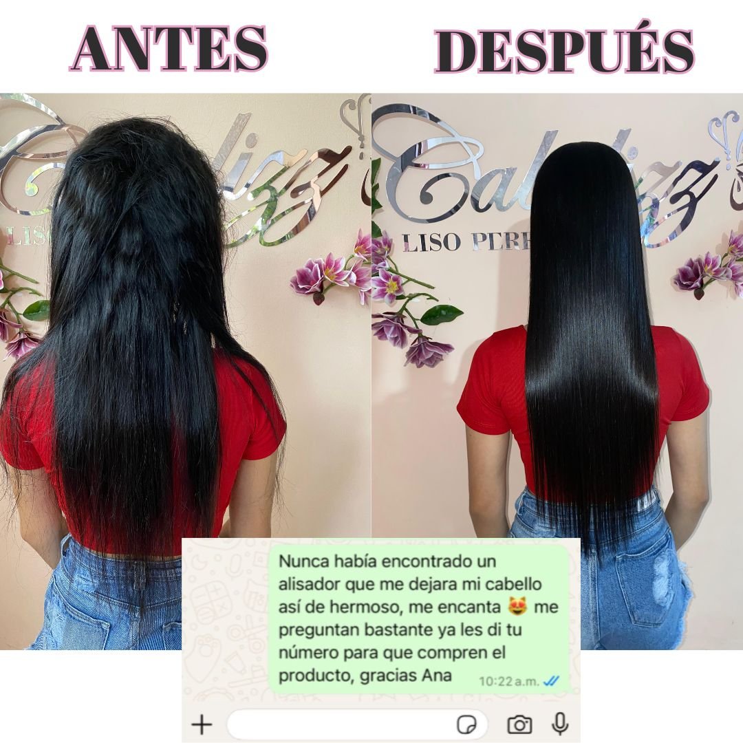 Con más de 1.500 alisados realizados en mi centro de belleza, decidí crear un producto que te permita lograr un cabello 100% liso, sin frizz y libre de formol desde la comodidad de tu hogar.